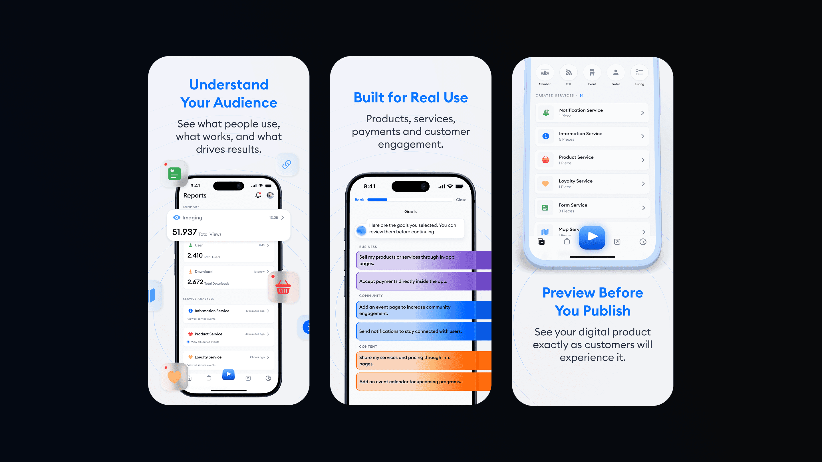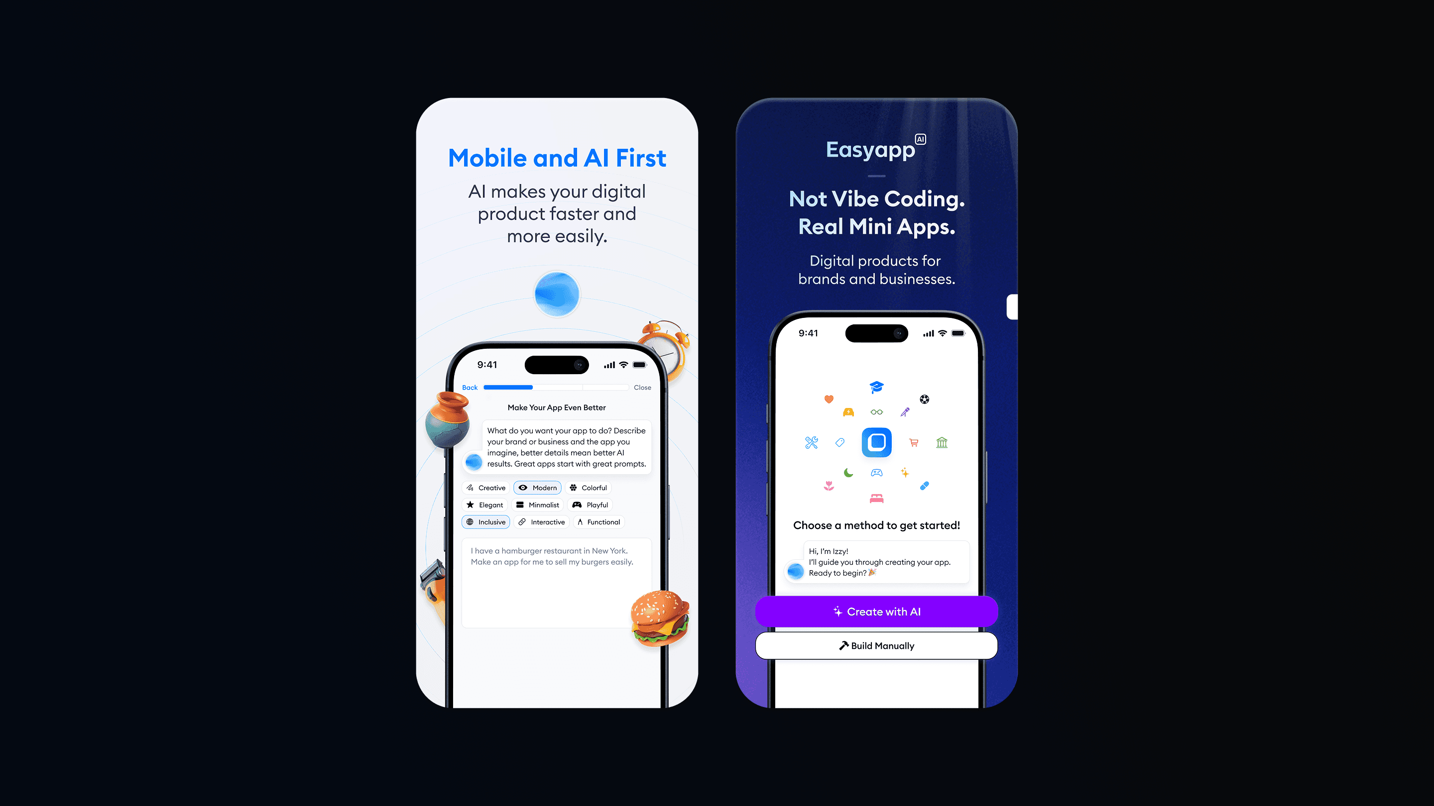 Easyapp’s main promise — creating a fully functional mobile app in minutes without writing code — was placed at the center of the store image narrative. This approach immediately builds curiosity and helps users feel that the product is accessible and achievable for them.