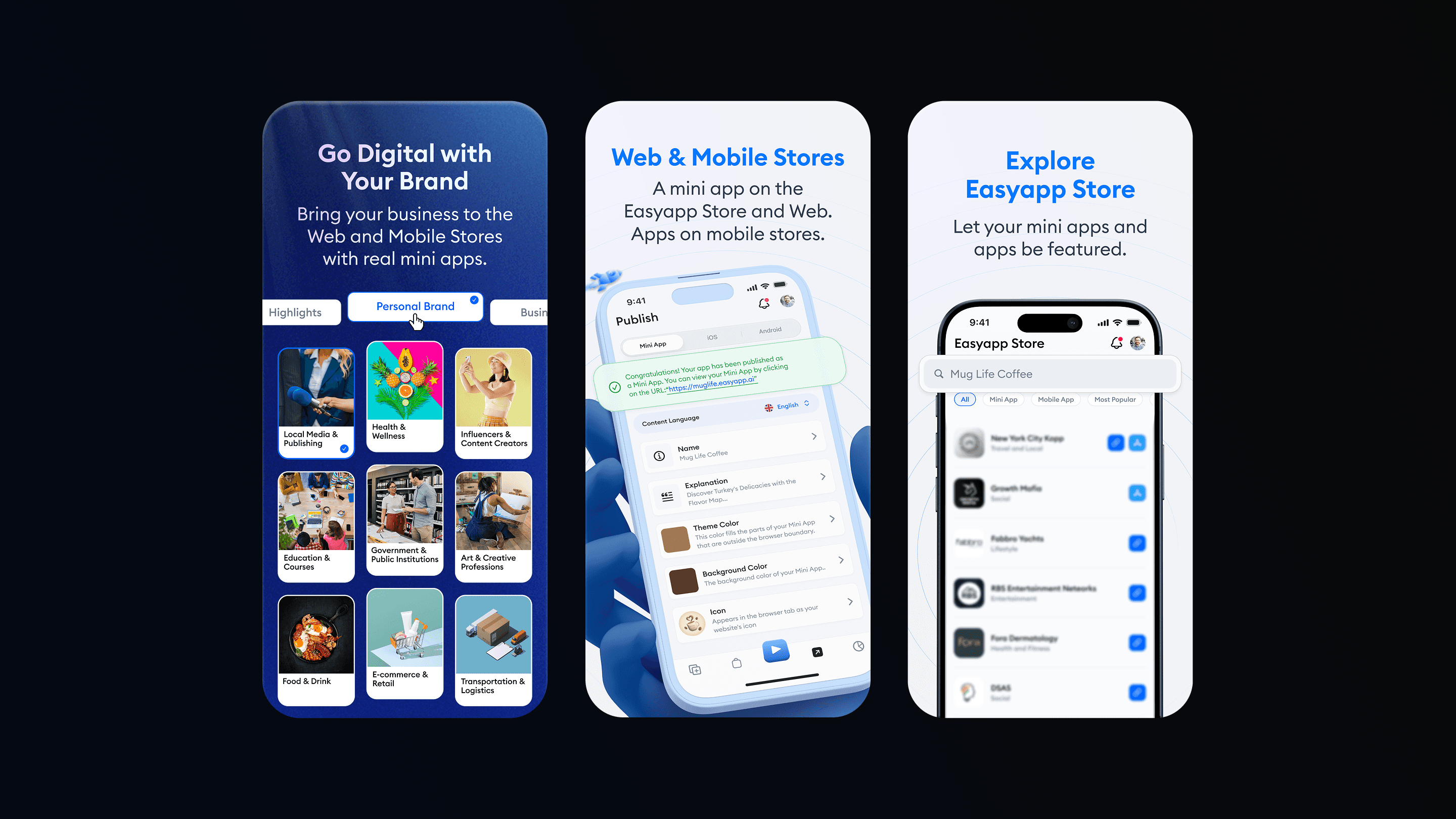 The store images reinforce Easyapp’s identity as a reliable, modern, and globally scalable product. The clean design language and consistent visual tone communicate professionalism while appealing to both beginners and business users.